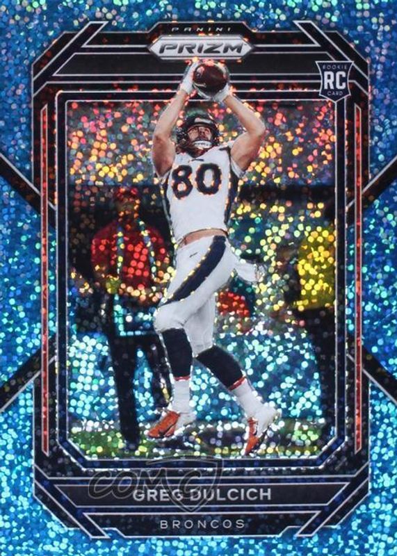 2022 Panini Prizm Greg Dulcich Blue Sparkle RC #/96 #360 Broncos