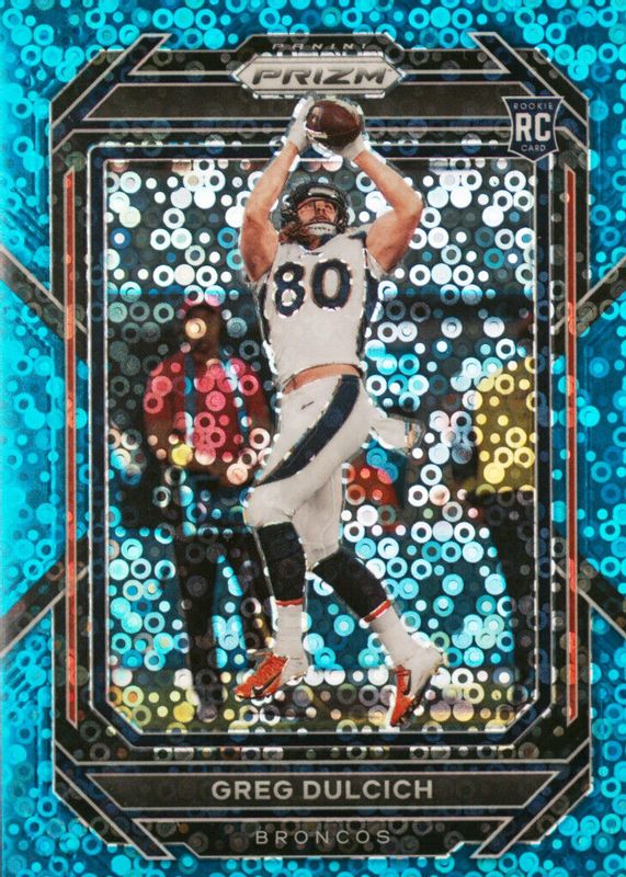 This card is 1 of 67 Greg Dulcich's card variations in the 2022 Prizm set being tracked by Sports Card Investor, including Base, Green, Green Ice, Light Blue, and No Huddle.