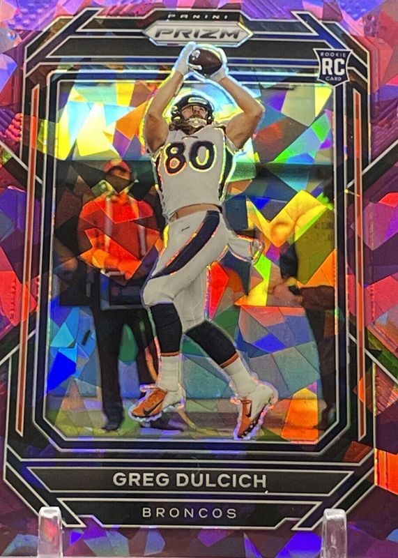 2022 Panini Prizm Purple Cracked Ice Greg Dulcich RC /225 Denver Broncos #360