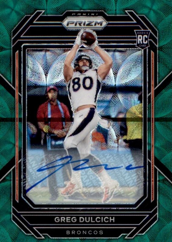 2022 Panini Green Scope Prizm #360 Greg Dulcich Broncos RC Rookie AUTO /75 NMT