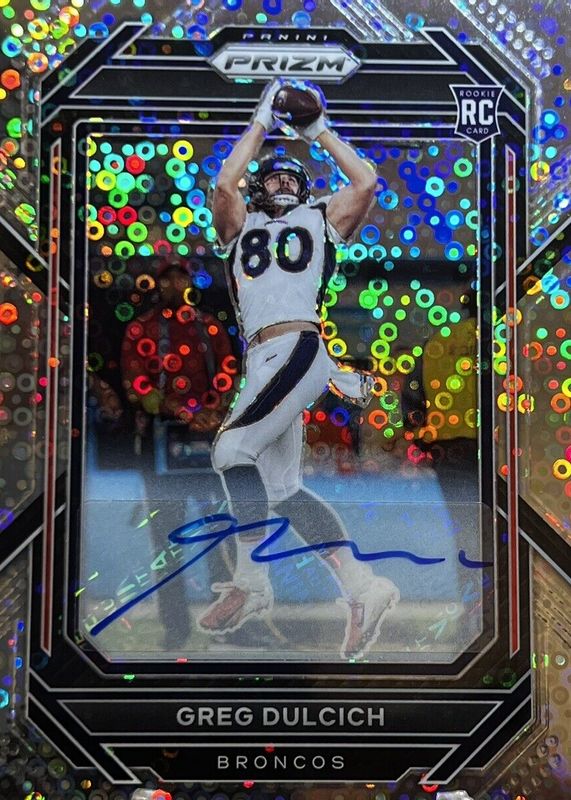 2022 Panini Prizm 360 Greg Dulcich Broncos RC Football Card No Huddle Auto