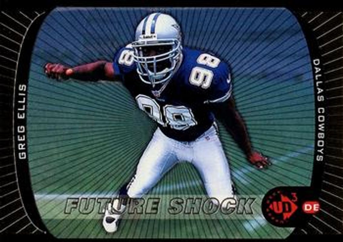 The Greg Ellis 1998 Upper Deck UD3 #187 Base Rookie card is 1 of 6 Greg Ellis' card variations in the 1998 Upper Deck UD3 set being tracked by Sports Card Investor, including #7 Base, #97 Base, #187 Die-Cut /2000, #7 Die-Cut /2000, and #97 Die-Cut /2000.
