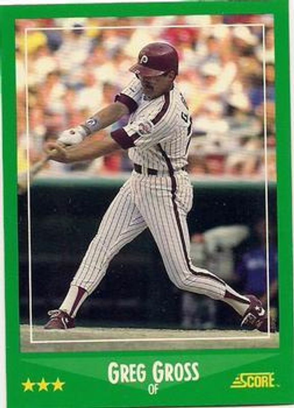 The Greg Gross 1988 Score #386 Glossy card is 1 of 2 Greg Gross' card variations in the 1988 Score set being tracked by Sports Card Investor, including Base.