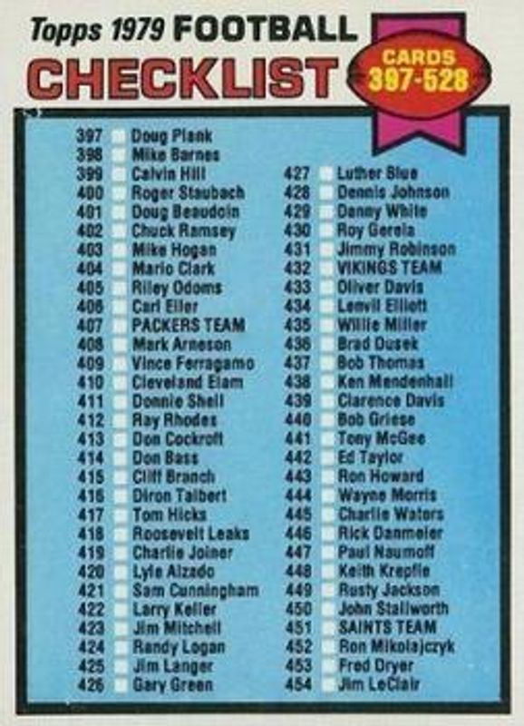 Other popular players in the 1979 Topps set include Lee Roy Selmon, Alan Page, Archie Griffin, Archie Manning, and Art Shell.