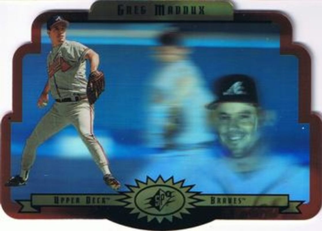 The Greg Maddux 1996 SPx #1 Gold card is 1 of 3 Greg Maddux's card variations in the 1996 SPx set being tracked by Sports Card Investor, including Base, and Bound for Glory.