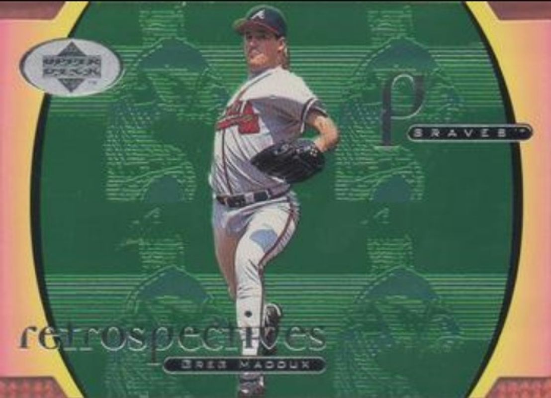 The Greg Maddux 1998 Upper Deck #12 Retrospectives card is 1 of 20 Greg Maddux's card variations in the 1998 Upper Deck set being tracked by Sports Card Investor, including #147 Base, #16 Base, #30 Base, #5 Base, and #602 Base.