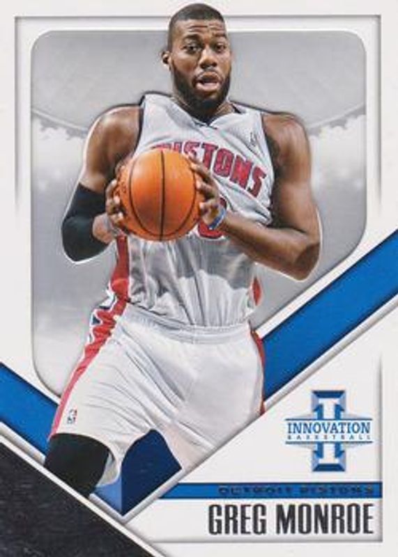 The Greg Monroe 2013 Innovation #71 Rookie View /199 card is 1 of 8 Greg Monroe's card variations in the 2013 Innovation set being tracked by Sports Card Investor, including Rookie View - Purple, Stained Glass /(SSP), Stained Glass - Gold /(SSP), Stained Glass - Light Blue /(SSP), and Rookie View - Blue /25.