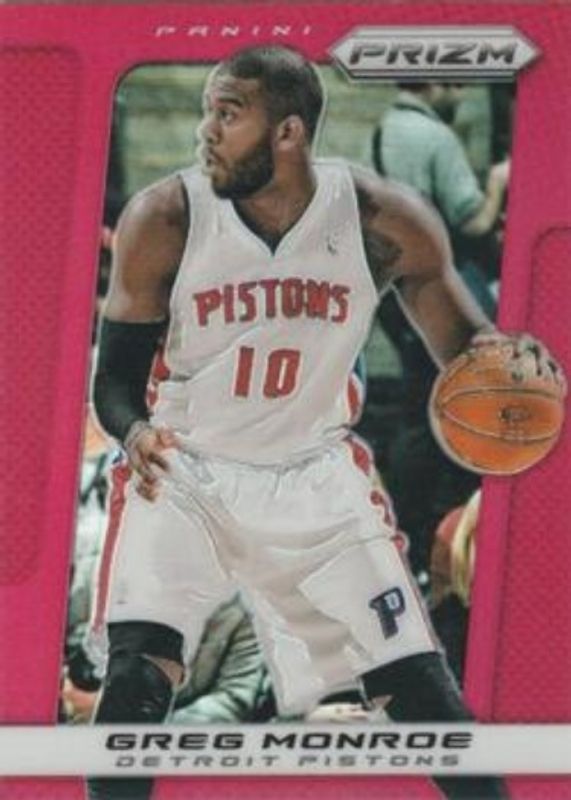 The Greg Monroe 2013 Prizm #156 Red card is 1 of 13 Greg Monroe's card variations in the 2013 Prizm set being tracked by Sports Card Investor, including Base, Blue, Green, Red White Blue Mosaic, and Silver.
