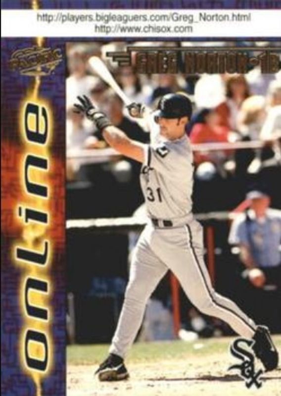 The Greg Norton 1998 Pacific Online #175 Web Cards card is 1 of 4 Greg Norton's card variations in the 1998 Pacific Online set being tracked by Sports Card Investor, including Base, Base Winners, and Red.