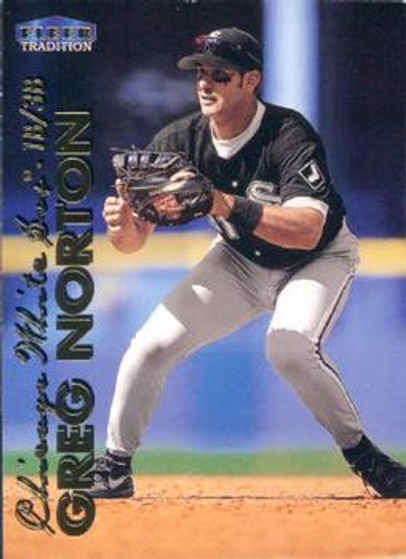 The Greg Norton 1999 Fleer Tradition #504 Base card is 1 of 4 Greg Norton's card variations in the 1999 Fleer Tradition set being tracked by Sports Card Investor, including Millennium, Warning Track Collection, and Starting 9 /9.