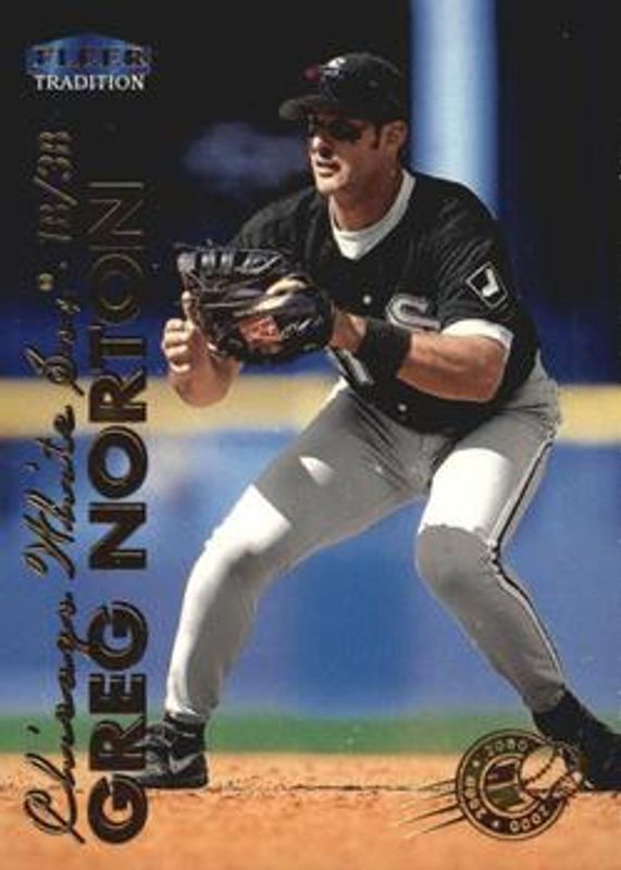 The Greg Norton 1999 Fleer Tradition #504 Millennium card is 1 of 4 Greg Norton's card variations in the 1999 Fleer Tradition set being tracked by Sports Card Investor, including Base, Warning Track Collection, and Starting 9 /9.