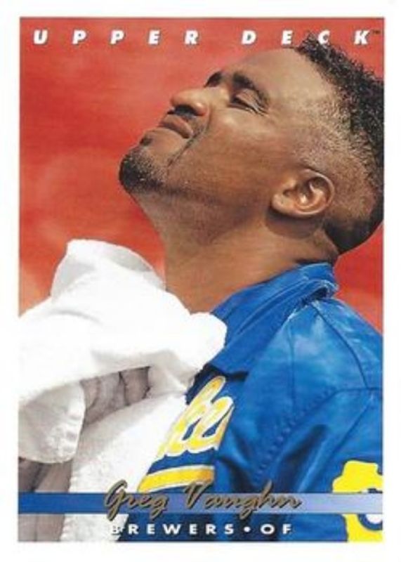 The Greg Vaughn 1993 Upper Deck #563 Base card is 1 of 3 Greg Vaughn's card variations in the 1993 Upper Deck set being tracked by Sports Card Investor, including Gold Hologram, and Home Run Heroes.