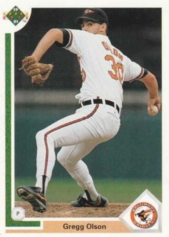 The Gregg Olson 1991 Upper Deck #326 Base card is 1 of 4 Gregg Olson's card variations in the 1991 Upper Deck set being tracked by Sports Card Investor, including #326c Base, #47 Base (Team Checklist), and #47b Base.