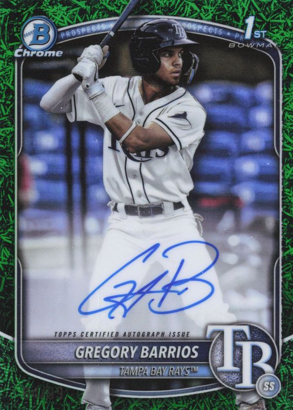 2025 Bowman Chrome Prospect 1st Auto Gregory Barrios Rays Green Grass /99