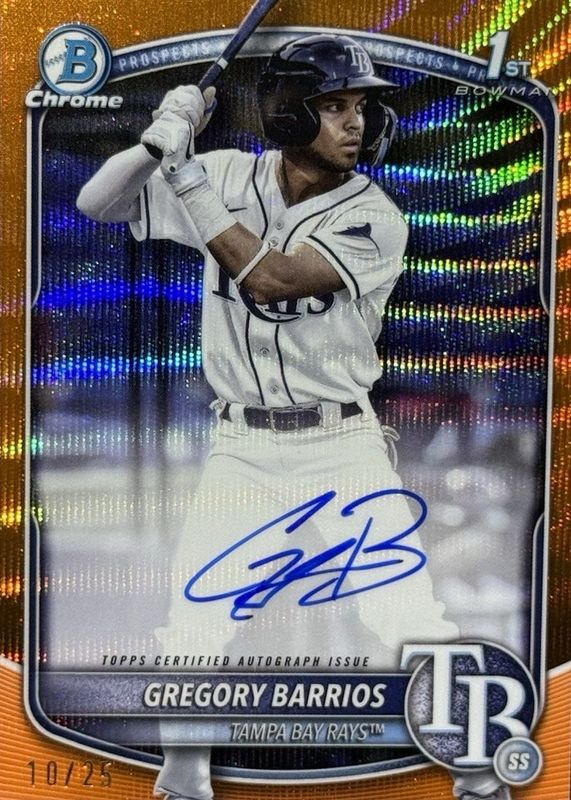 Auctions Ending Soon for Gregory Barrios 2025 Bowman #CPA-GB Chrome Prospect Auto - Orange Wave Refractor /25 (1st) RAW
