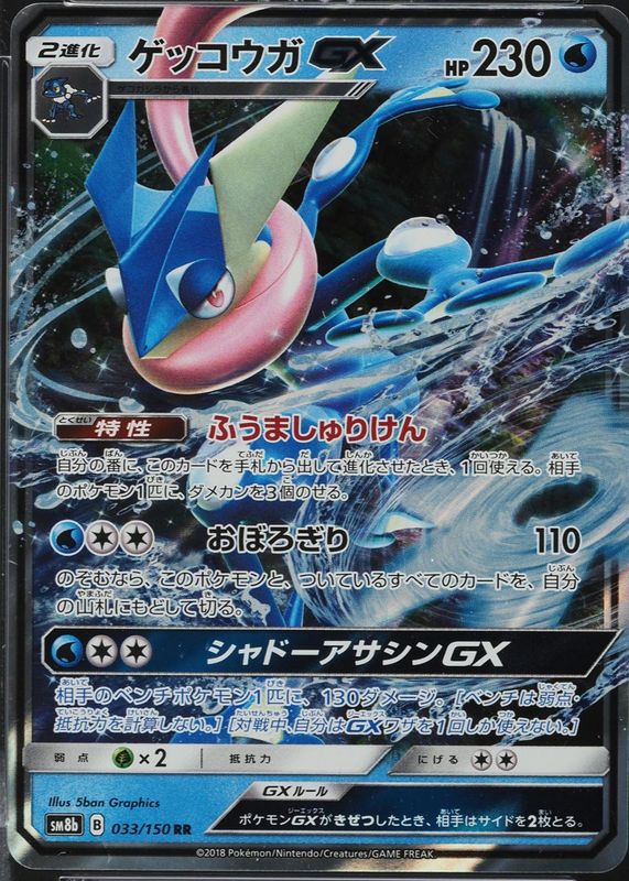 Greninja GX 2018 Japanese Sun & Moon: GX Ultra Shiny #033/150 Double Rare RAW TCG (LIGHTLY PLAYED) Price Guide