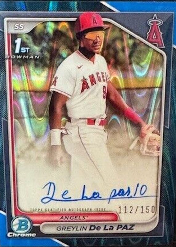 GREYLIN DE LA PAZ 2024 Bowman Chrome 1st Auto BLUE RayWave Refractor /150 *bt