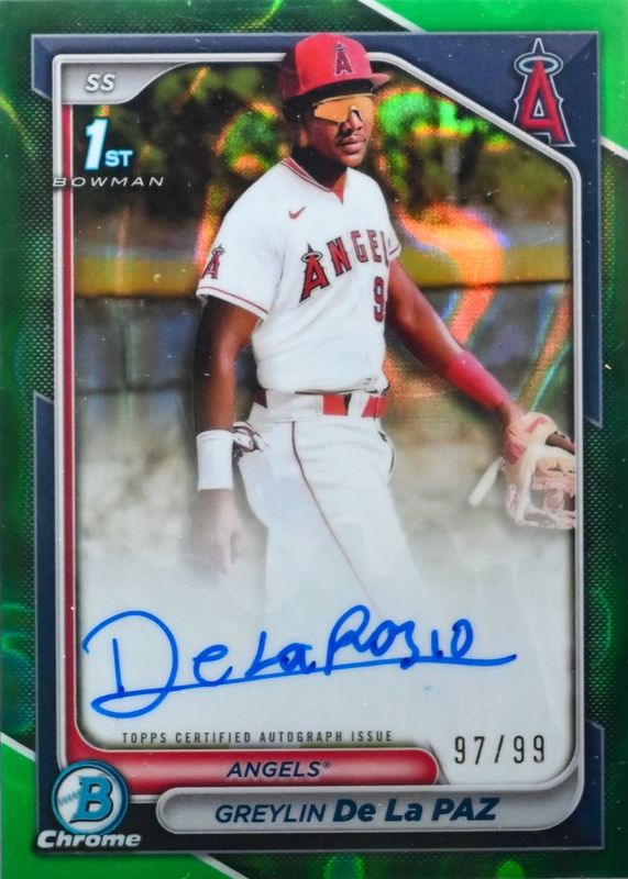 Best Prices Available For Sale of Greylin De La Paz 2024 Bowman Chrome #CPA-GD Prospect Auto - Green Lava Refractor /99 (1st)