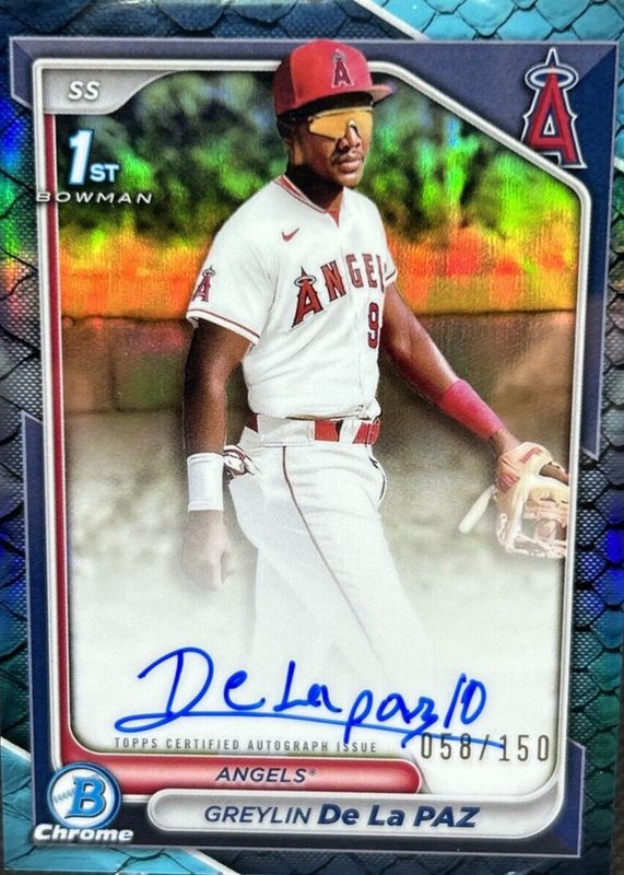 2024 Bowman Chrome Greylin De La Paz 1st Auto Blue Reptilian /150 #CPA-GD Angels