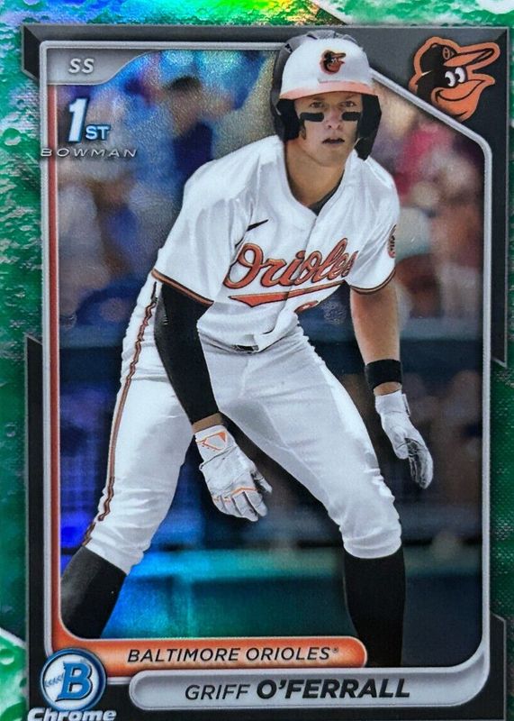 This card is 1 of 50 Griff O'Ferrall's card variations in the 2024 Bowman Draft set being tracked by Sports Card Investor, including Chrome (1st), Chrome - Bubble Gum (1st), Chrome - Peanuts (1st), Chrome - Pearl Refractor (1st), and Chrome - Popcorn (1st).