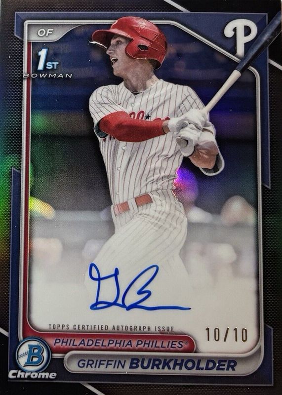 Auctions Ending Soon for Griffin Burkholder 2024 Bowman Draft #BDC-60 Chrome - Black Refractor /10 (1st) RAW