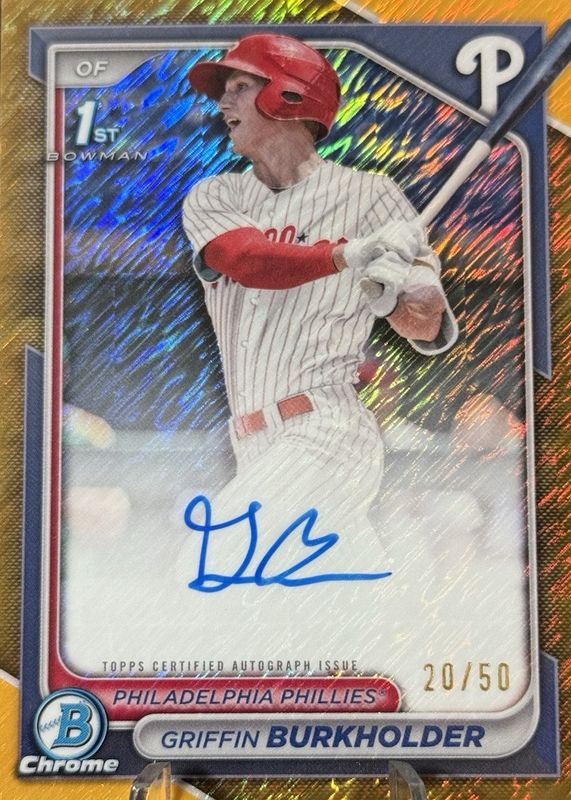 Griffin Burkholder 2024 Bowman Draft #CPA-GB Chrome DP Auto - Gold Shimmer Refractor /50 (1st) RAW Price Guide