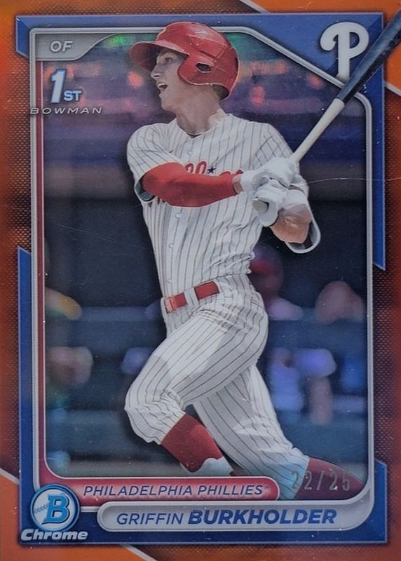Auctions Ending Soon for Griffin Burkholder 2024 Bowman Draft #BDC-60 Chrome - Orange Refractor /25 (1st) RAW