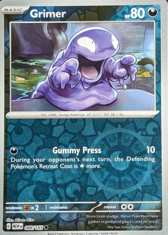 Grimer 2023 Scarlet & Violet: 151 #088/165 Reverse Holo RAW TCG (NEAR MINT) Price Guide