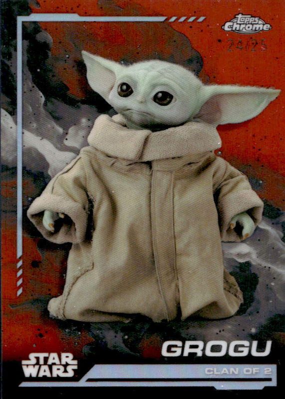 The Grogu 2024 Topps Chrome Star Wars #22 Rebel Orange Refractor /25 card in Raw condition has not changed in price in the last 30 days and was last sold for $27.00 .