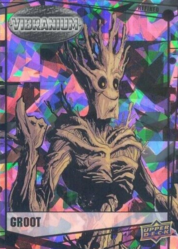 This card is 1 of 6 Groot's card variations in the 2015 Upper Deck Marvel Vibranium set being tracked by Sports Card Investor, including Base, Raw Vibranium, Molten Vibranium /299, Radiance Vibranium /50, and Vibranium Bar /5.