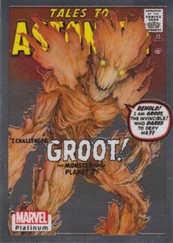 The Groot 2023 Upper Deck Marvel Platinum #WI37 Cover Variant card is 1 of 42 Groot's card variations in the 2023 Upper Deck Marvel Platinum set being tracked by Sports Card Investor, including Base, Black Rainbow, Blue Rainbow, Blue Surge, and Purple Rainbow.