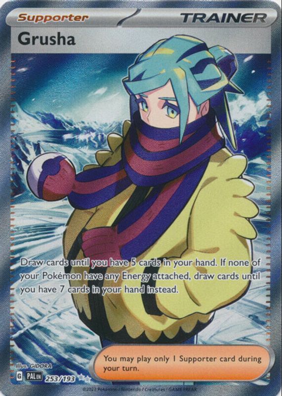 The Grusha 2023 Scarlet & Violet: Paldea Evolved #253/193 Ultra Rare (Full Art) card in Raw TCG (Near Mint) condition has moved up $0.99 (+16.7%) in the last 30 days and was last sold for $6.92 .