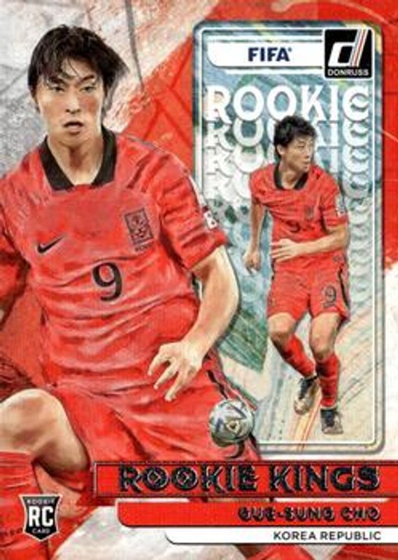 The Gue-Sung Cho 2022 Donruss #11 Rookie Kings - Silver card is 1 of 7 Gue-Sung Cho's card variations in the 2022 Donruss set being tracked by Sports Card Investor, including Rookie Kings, Rookie Kings - Green, Rookie Kings - Orange, Rookie Kings - Purple /25, and Rookie Kings - Pink /5.