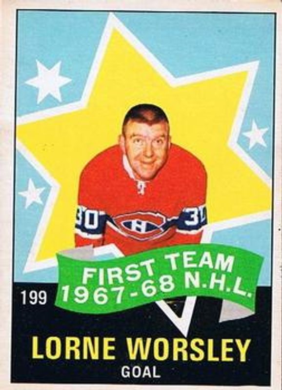 The Gump Worsley 1968 O-Pee-Chee #199 Base card is 1 of 2 Gump Worsley's card variations in the 1968 O-Pee-Chee set being tracked by Sports Card Investor, including Base.