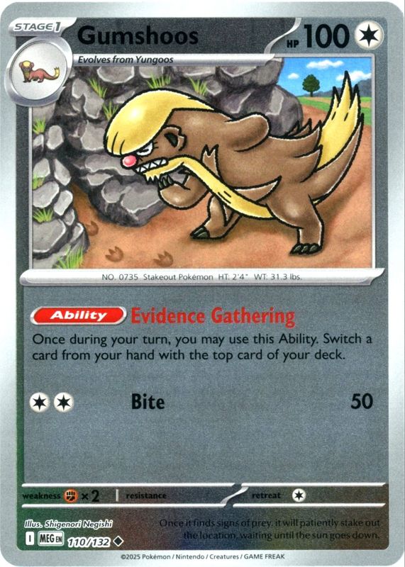 Gumshoos 2025 Mega Evolution #110/132 Reverse Holo RAW TCG (LIGHTLY PLAYED) Price Guide