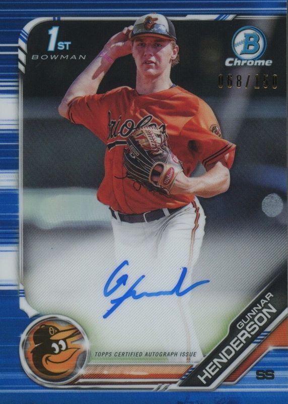 2019 Bowman Chrome Draft Gunnar Henderson 1st Prospect Blue Refractor Auto #/150