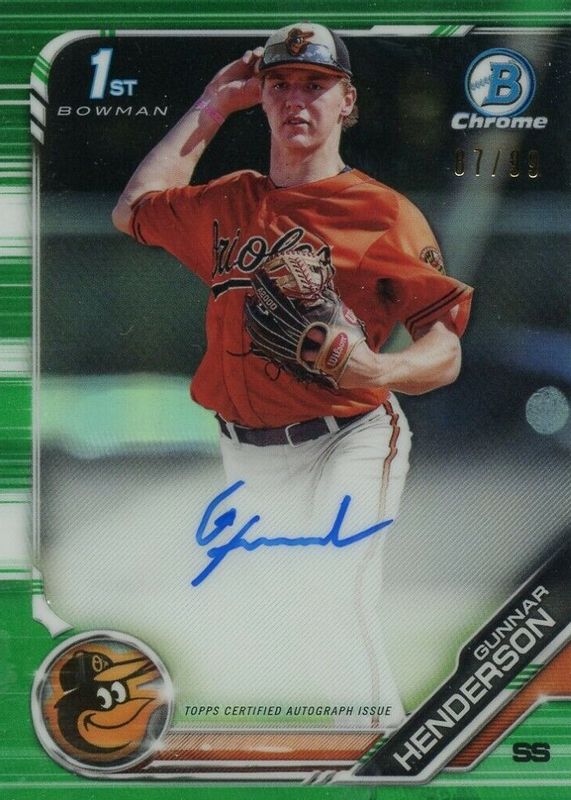 2019 Bowman Chrome Draft Green Refractor Gunnar Henderson RC Rookie AUTO /99