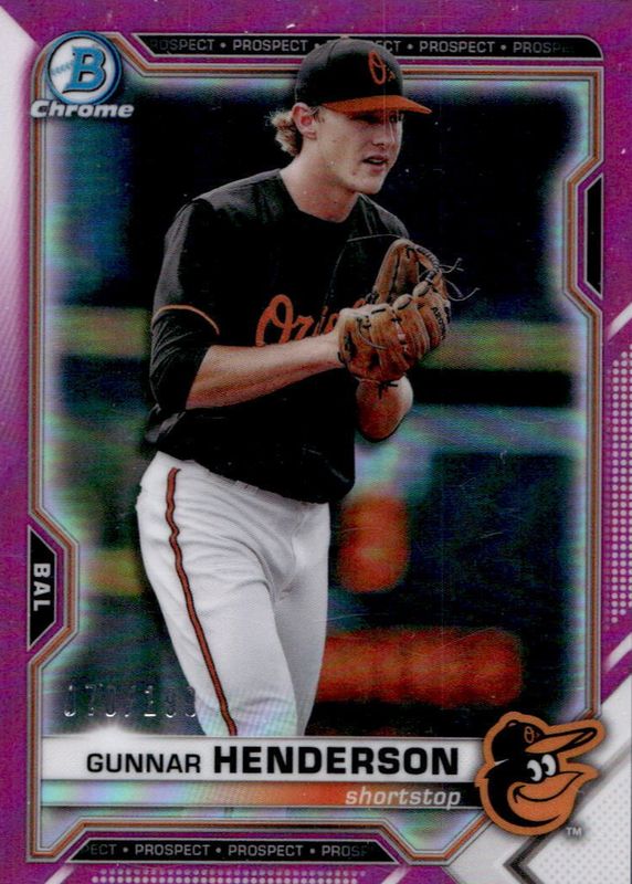 2021 Bowman Chrome GUNNAR HENDERSON FUCHSIA REFRACTOR PROSPECT RC /199 BCP-49!