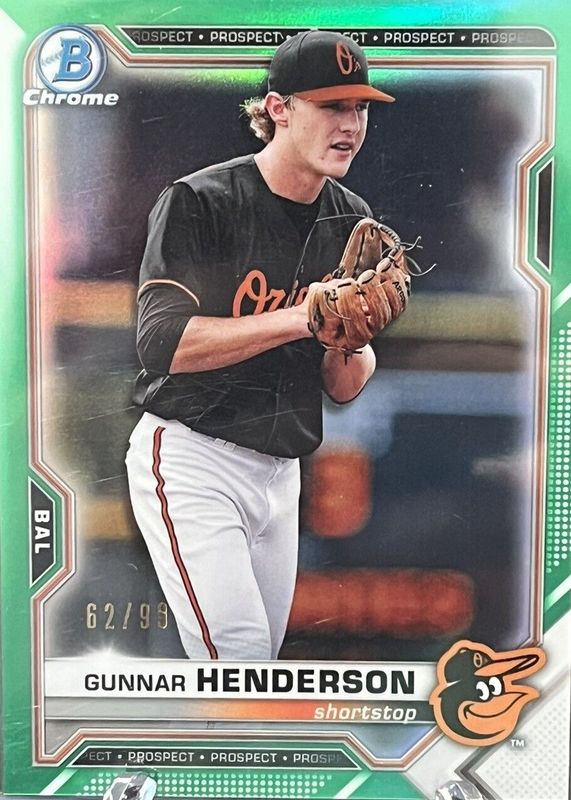 Best Prices Available For Sale of Gunnar Henderson 2021 Bowman #BCP-49 Chrome Prospects - Green Refractor /99