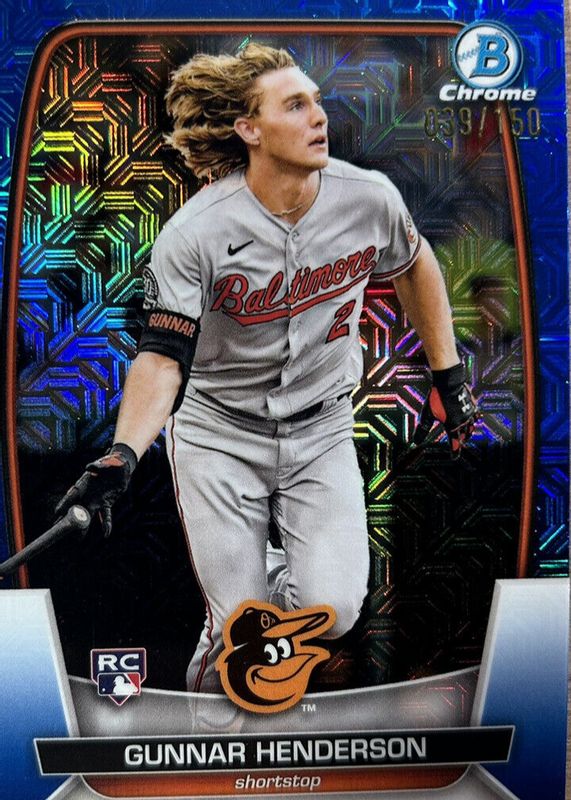 Auctions Ending Soon for Gunnar Henderson 2023 Bowman Mega Box #65 Chrome - Blue Mojo Refractor /150 Rookie RAW