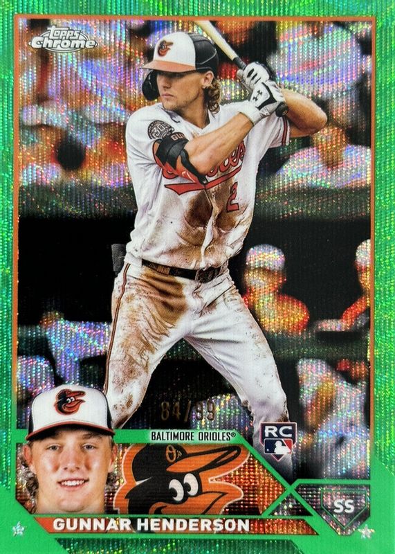 2023 Topps Chrome Green Wave Refractor #2 Gunnar Henderson 91/99 RC Orioles ROY