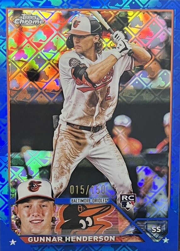 GUNNAR HENDERSON 2023 TOPPS CHROME LOGOFRACTOR ROOKIE BLUE RC /150 Q2754