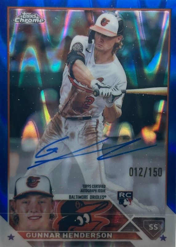 2023 Topps Chrome Gunnar Henderson Blue RayWave Refractor Rookie Auto #150/150