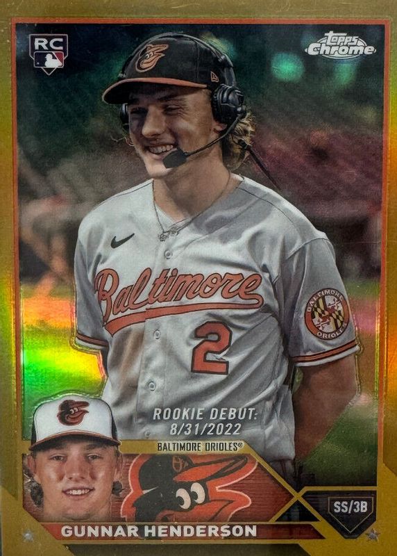 2023 TOPPS CHROME UPDATE GUNNAR HENDERSON ROOKIE DEBUT GOLD REFRACTOR /50