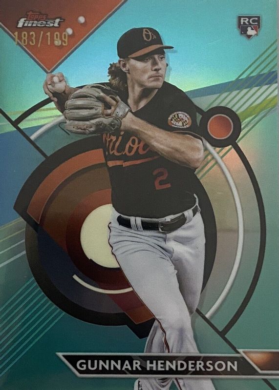 2023 Topps Finest Baseball GUNNAR HENDERSON RC No. 100 AQUA REFRACTOR #/199! BAL