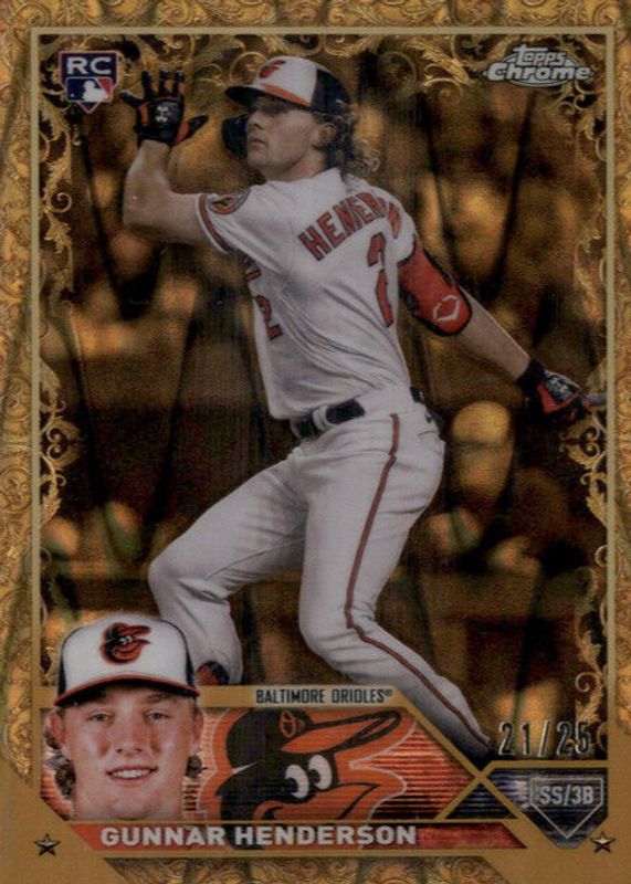 Auctions Ending Soon for Gunnar Henderson 2023 Topps Gilded Collection #51 RayWave Gold Etch Refractor /25 Rookie RAW