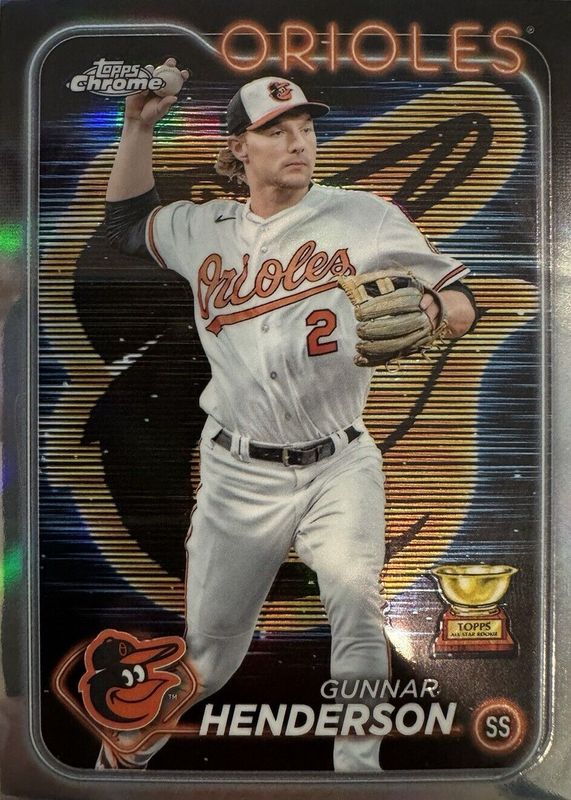 This card is 1 of 53 Gunnar Henderson's card variations in the 2024 Topps Chrome set being tracked by Sports Card Investor, including Base, Negative Refractor, Pink Refractor, Prism Refractor, and RayWave Refractor.