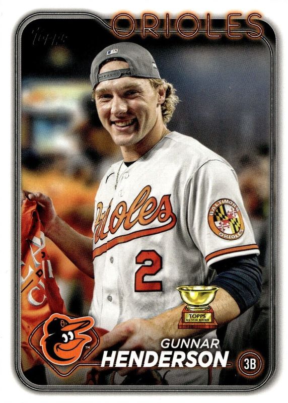 This card is 1 of 25 Gunnar Henderson's card variations in the 2024 Topps set being tracked by Sports Card Investor, including Hot Dogs, Statue of Liberty, Gold /2024, Blue Foil /999, and Purple Foil /799.