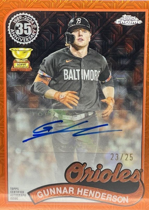Auctions Ending Soon for Gunnar Henderson 2024 Topps Silver Pack #2T89C-8 1989 Chrome Promo Autographs - Orange Refractor (Series 2) /25 RAW