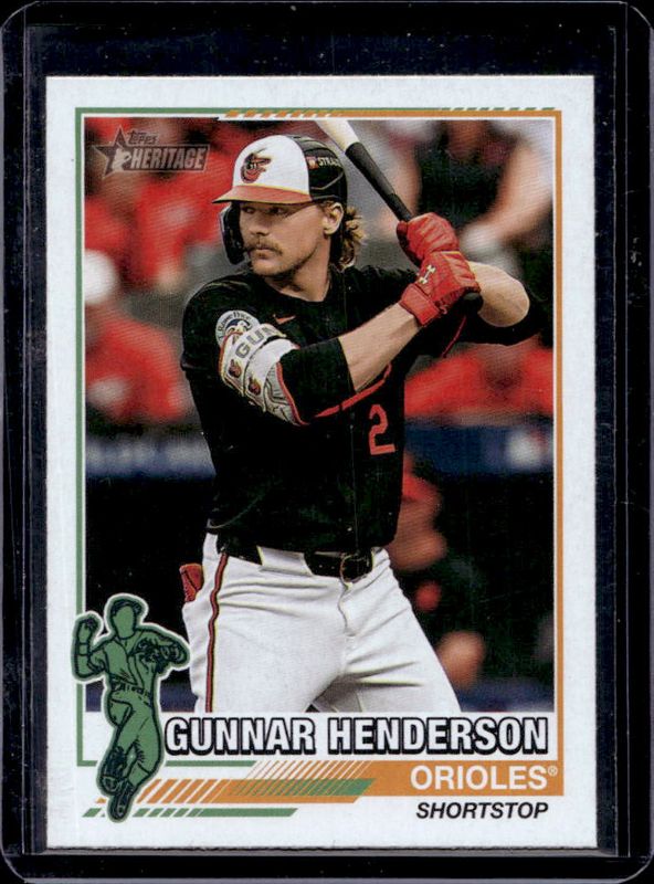 The Gunnar Henderson 2025 Topps Heritage #76R-17 1976 Redefined card is 1 of 34 Gunnar Henderson's card variations in the 2025 Topps Heritage set being tracked by Sports Card Investor, including Base, Black Border, Dark Blue Border, Dark Green Border, and Dark Yellow Border.